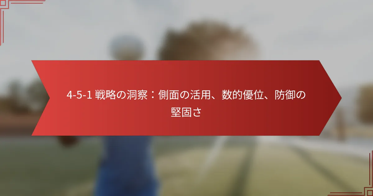 4-5-1フォーメーションは、サッカーにおける戦術的な配置であり、強力な中盤の存在を強調しつつ、守備の堅実さを維持します。幅とウイングプレーを活用することで、チームは相手の守備を広げ、得点機会を創出することができます。このフォーメーションはまた、中盤での数的優位を可能にし、ゲームのコントロールを強化し、相手が効果的にカウンターを仕掛けるのを難しくします。 サッカーにおける4-5-1フォーメーションとは? 4-5-1フォーメーションは、サッカーにおける戦術的な配置であり、強力な中盤の存在を強調しつつ、守備の堅実さを維持します。通常、4人のディフェンダー、5人のミッドフィルダー、1人のフォワードで構成され、チームはフランクを活用し、ピッチのさまざまなエリアで数的優位を創出することができます。 4-5-1フォーメーションの定義と構造 4-5-1フォーメーションは、後方に4人のディフェンダー、中央に5人のミッドフィルダー、前方に1人のストライカーを配置した構成です。この配置はバランスの取れたアプローチを提供し、チームが効果的に守備を行いながら攻撃プレーをサポートすることを可能にします。ミッドフィルダーは通常、中央と幅広の選手の組み合わせを含み、ゲームのテンポをコントロールするのに役立ちます。 守備においては、4人のディフェンダーが協力して堅固なバックラインを形成し、5人のミッドフィルダーは攻撃と守備の役割をシフトすることができます。この柔軟性により、チームはゴールを狙う際やリードを守る際にゲームの流れに適応することができます。 4-5-1フォーメーション内の主要な選手の役割 4-5-1フォーメーションでは、各選手が全体の戦略に貢献する特定の役割を持っています。主要な役割は以下の通りです: ゴールキーパー: ショットストッピングと守備の組織を担当します。 ディフェンダー: 2人のセンターバックは相手のフォワードをマークし、フルバックは幅を提供し、守備と攻撃の両方をサポートします。 センターミッドフィルダー: ボールの配分と守備から攻撃へのリンクを担当し、中盤エリアをコントロールします。 ウイング: フランクに配置され、相手を引き伸ばし、ボックス内へのクロスを提供します。 ストライカー: チャンスをゴールに変えることが主な役割の孤独なフォワードです。 この役割の分配により、守備の安定性と攻撃の機会の両方が可能になり、4-5-1は多様性のあるフォーメーションとなります。 4-5-1フォーメーションの歴史的背景と進化 4-5-1フォーメーションは、伝統的な4-4-2から進化したもので、数十年にわたりサッカーを支配してきました。チームが中盤のコントロールと守備の組織を優先するようになると、特に20世紀後半に4-5-1の人気が高まりました。コーチたちは、国内リーグや国際大会での効果を認識しました。 著名なチームや監督は、4-5-1を大成功を収めるために利用し、彼らのプレースタイルに合わせてフォーメーションを適応させました。例えば、2010年のFIFAワールドカップでは、いくつかのチームがこのフォーメーションを採用し、守備能力を強化しつつ攻撃でも競争力を保ちました。 4-5-1フォーメーションの一般的なバリエーション 4-5-1フォーメーションは、チームの強みや戦術的な好みに応じてさまざまに適応できます。一般的なバリエーションには以下が含まれます: 4-3-3: ウイングがピッチの高い位置に押し上げられ、ボール保持時に実質的に4-3-3に変わるより攻撃的なバージョンです。 4-2-3-1: このバリエーションでは、追加の攻撃的ミッドフィルダーが導入され、孤独なストライカーへの創造性とサポートが増します。 4-5-0: このセットアップでは、チームが伝統的なストライカーを放棄し、ミッドフィルダーに得点機会を創出させることを選択する場合があります。 これらのバリエーションにより、チームは相手や試合の状況に応じて戦術を調整でき、4-5-1は現代サッカーにおいて柔軟で戦略的な選択肢となります。 チームはどのように4-5-1フォーメーションを使ってフランクを活用できるか? チームは、4-5-1フォーメーションを利用して幅とウイングプレーを活用し、スペースと得点機会を創出することで、フランクを効果的に活用できます。この戦略は、選手を配置して相手の守備を引き伸ばし、オーバーラッピングランや効果的なクロスをボックス内に提供することに焦点を当てています。 ウイングプレーヤーを効果的に活用するための戦略 4-5-1フォーメーションにおけるウイングプレーヤーの影響を最大化するために、チームは以下のいくつかの重要な戦略を実施すべきです: 幅の使用: ウイングを広く配置して守備を引き伸ばし、中央にギャップを作ります。 効果的なウイングプレー: ウイングに1対1でディフェンダーに挑むよう促し、得点機会を創出します。 オーバーラッピングラン: フルバックがウイングをサポートするためにオーバーラッピングランを行い、攻撃の層を追加しま
