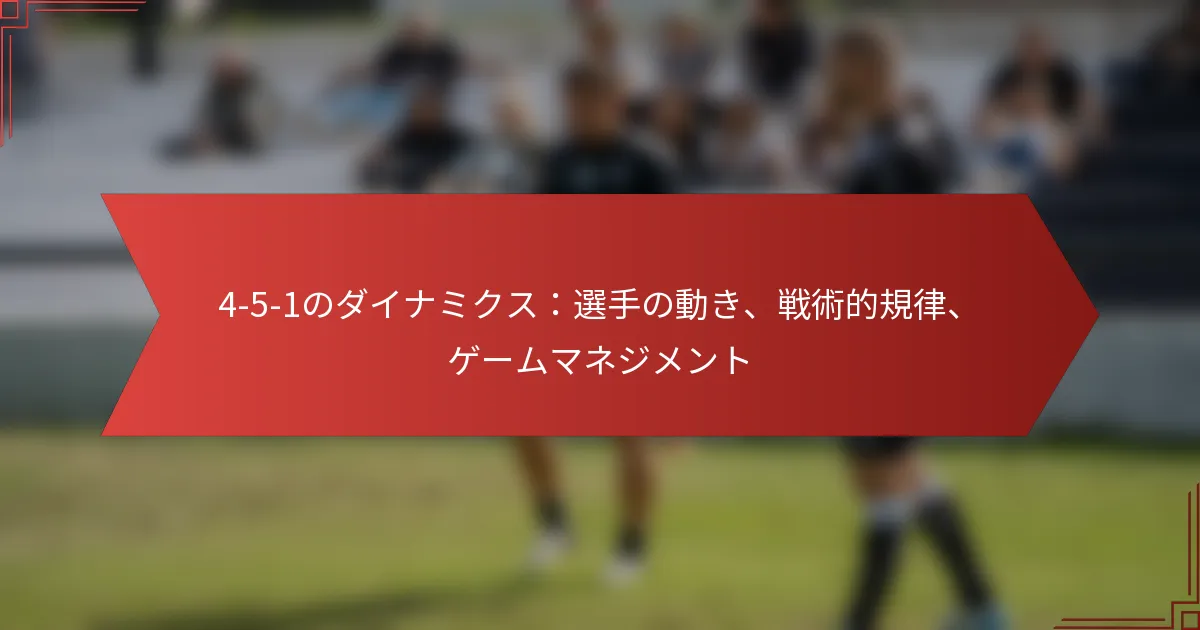 4-5-1フォーメーションは、サッカーにおける戦略的な配置であり、中盤の支配と守備の堅固さを重視し、4人のディフェンダー、5人のミッドフィールダー、1人のフォワードで構成されています。このフォーメーション内での選手の効果的な動きは、戦術的な規律を維持するために不可欠であり、攻撃と守備の間でのシームレスな移行を可能にします。選手が自分の役割を守ることで、4-5-1はチームがさまざまな試合シナリオに動的に適応し、全体的なパフォーマンスを向上させることを可能にします。 サッカーにおける4-5-1フォーメーションとは? 4-5-1フォーメーションは、4人のディフェンダー、5人のミッドフィールダー、1人のフォワードで構成されるサッカーの戦術的な配置です。このフォーメーションは、中盤の支配と守備の安定性を強調し、迅速なカウンターアタックを可能にします。 4-5-1フォーメーションの定義と構造 4-5-1フォーメーションは、後方に4人のディフェンダー、中央に5人のミッドフィールダー、前方に1人のストライカーを配置します。ミッドフィールダーは通常、中央と幅広い選手の組み合わせを含み、攻撃と守備の両方の局面で役立ちます。 この構造により、チームは中盤で強い存在感を維持し、ボールの支配を容易にし、試合のペースをコントロールできます。孤立したフォワードは、得点機会を作るためにミッドフィールダーからのサポートに依存することが多いです。 4-5-1フォーメーションにおける主要な選手の役割 ゴールキーパー: ショットを防ぎ、守備を組織する責任があります。 ディフェンダー: ゴールを守る4人の選手で、通常は2人のセンターバックと2人のフルバックで構成されます。 センターミッドフィールダー: ゲームのテンポをコントロールし、ボールを配分し、守備と攻撃の両方をサポートする3人の選手です。 ウィンガー: 幅を提供し、ボールをクロスし、守備のために戻る2人の幅広いミッドフィールダーです。 ストライカー: 得点機会を決め、プレーを保持する任務を担う孤立したフォワードです。 4-5-1フォーメーションの歴史的背景と進化 4-5-1フォーメーションは、20世紀後半に中盤の支配を伝統的な攻撃フォーメーションよりも重視するようになったチームによって注目を集めました。特に国際大会では、戦術的な規律が重要です。 年月が経つにつれて、4-5-1のバリエーションが登場し、異なる選手の強みやさまざまなコーチの戦術哲学に適応してきました。このフォーメーションは、多くの成功したチームによって利用され、その多様性と効果を示しています。 4-5-1フォーメーションの一般的なバリエーション 4-5-1フォーメーションには、特定の試合状況や選手の能力に応じて調整されたさまざまなバリエーションがあります。一般的な適応には以下が含まれます: 4-2-3-1: 追加の攻撃的ミッドフィールダーを持つ、より攻撃的なバリエーションです。 4-1-4-1: 専任の守備的ミッドフィールダーを持ち、守備の安定性を強調します。 4-4-1-1: 2人目のフォワードを特徴とし、中盤の強さを維持しながら攻撃の選択肢を増やします。 4-5-1フォーメーションの視覚的表現 視覚的な図は、4-5-1フォーメーションにおける選手の配置を示すのに役立ちます。以下はシンプルな表現です: ポジション 選手数 ゴールキーパー 1 ディフェンダー 4 ミッドフィールダー 5 フォワード 1 この表は、4-5-1フォーメーションにおける選手の分布を要約し、中盤の強さと守備の組織化に焦点を当てています。 4-5-1フォーメーション内での選手の動きはどのように機能するか? 4-5-1フォーメーションにおける選手の動きは、攻撃と守備の戦略の両方にとって重要です。このフォーメーションは、中盤の強い存在感を強調し、攻撃と守備の間での流動的な移行を可能にしながら、戦術的な規律を維持します。 攻撃的な選手の動きのパターン 4-5-1フォーメーションでは、攻撃的な選手の動きはスペースと機会を作ることに焦点を当てています。孤立したストライカーは、ミッドフィールダーとのプレーをつなぐために後ろに下がることが多く、ウィンガーはディフェンスを引き伸ばすために外に出ます。 重要な攻撃パターンには以下が含まれます: ウィンガーがディフェンスの隙間を突くために斜めに走る。 ミッドフィールダーがストライカーをサポートするためにボックス内に遅れて走り込む。 ディフェンスラインを突破するためのクイックなワンツーパス。 これらの動きを成功裏に実行するためには、選手間の効果的なコミュニケーションが不可欠であり、攻撃時の役割を全員が認識していることが重要です。 守備的な選手の動きのパターン 4-5-1フォーメーションにおける守備的なポジショニングは、コンパクトさと規律を維持することに依存しています。ミッドフィールダーは、相手にプレッシャーをかけ、パスコースをブロックする重要な役割を果たします。 一般的な守備パターンには以下が含まれます: ミッドフ